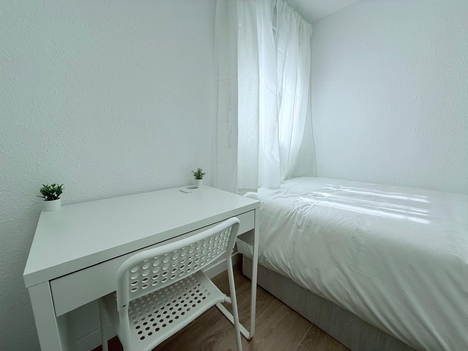 La habitación está amueblada y pensada para ofrecer comodidad y privacidad. Cuentan con cama individual, escritorio con silla, armario, calefacción eléctrica, y baño compartido equipado con plato de ducha, lavabo y WC.