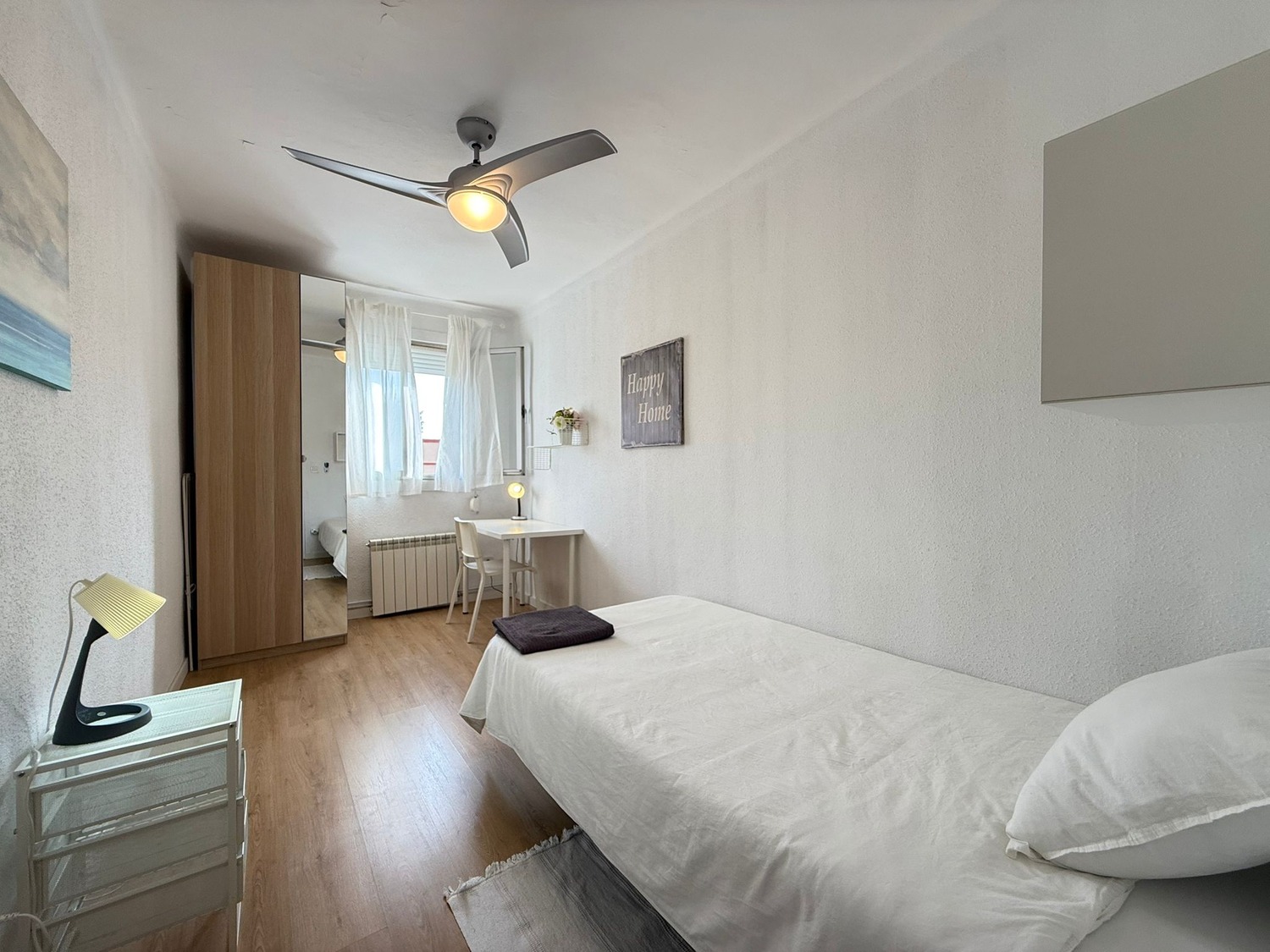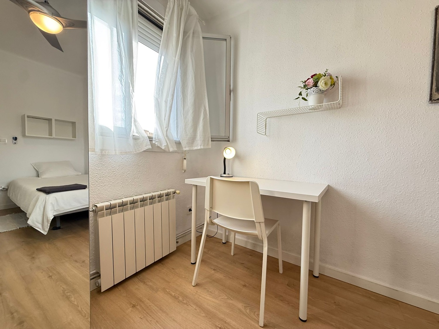 Excelente habitación en piso compartido para estudiantes, cuenta con una cama individual de 1,05cm, una mesa de noche con lampara, un escritorio cristalizado con silla para tus horas de estudio trabajo desde casa, un armario amplio, una de las grandes ventajas es la ubicación, se encuentra a 2 minutos de avenida La Albufera, al lado de la estación del metro de Nueva Numancia Linea 1 y líneas de autobús, supermercados, bancos y comercio; a 8 minutos de la estación de Puerta de Atocha y a 11 minutos de la Puerta del Sol, piso muy acogedor, excelente convivencia.